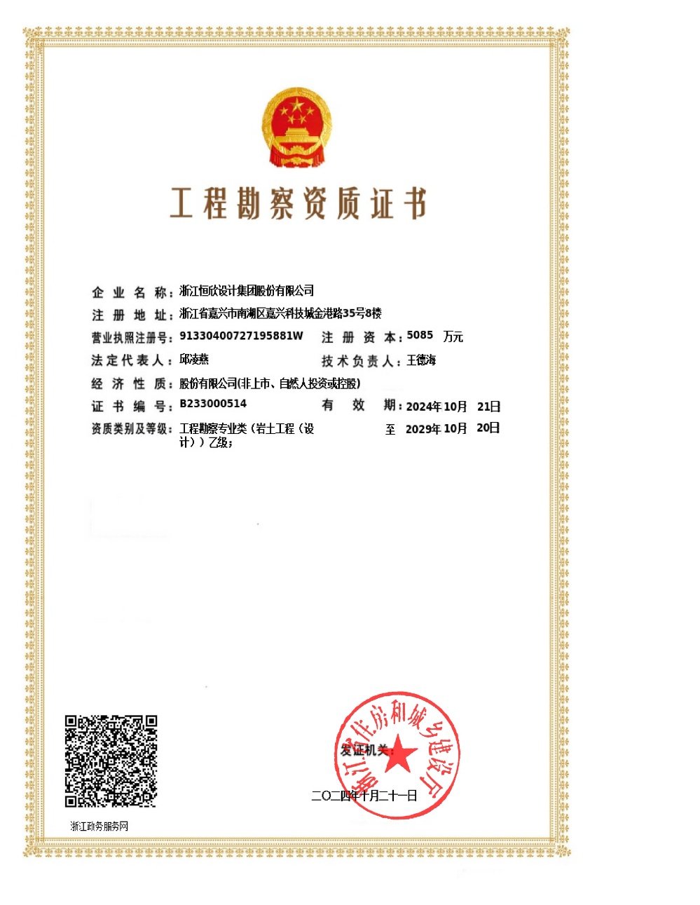 岩土工程设计乙级证书